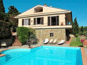 "Villino del Sole", huis 3-kamers 70 m2. Rustiek ingericht: woonkamer met open haard, eettafel en Sat-TV. Uitgang naar het terras. 1 kamer met 1 2-pers bed (160 cm), douche/WC. 1...