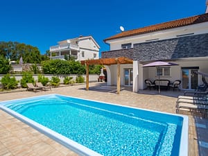 Villa 5-kamers 180 m2 op 2 verdiepingen. Mooi en modern ingericht: woon-/eetkamer met 1 2-pers divanbed (130 cm, lengte 200 cm), Sat-TV. Uitgang naar het terras. 1 kamer met 1...