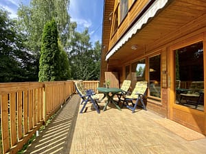 Huis 3-kamers 55 m2. Gezellig en met veel hout ingericht: woon-/eetkamer met zwedenkachel, Sat-TV, stereo-installatie en DVD. Woonkamer met wintertuin. Uitgang naar het terras. 1...