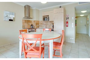 Modern tweekamerappartement met airconditioning op de begane grond voor 5 personen Woonkamer met kitchenette en tweepersoonsslaapbank 1 slaapkamer met tweepersoonsbed en...