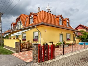 Huis 6-kamers 150 m2. Gedeeltelijk afgeschuinde daken, comfortabel ingericht: woon-/eetkamer met Sat-TV en air-conditioning. 2 kamers, elke kamer heeft 1 2-pers bed. Uitgang naar...