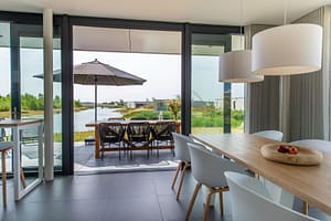Waterlijn 3 is een riante, luxe, 6-persoons villa gelegen aan een waterpartij. De sfeervolle woonkamer is heerlijk licht en door de glazen pui over de volle breedte van de...