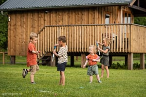 De kids zullen hun ogen uitkijken in deze luxe bungalow met boomhutbedden, speelgoed en verkleedkleding. En jullie hebben ook een gezellige slaapkamer met boxspring bedden. De...