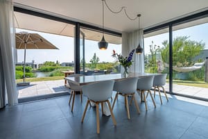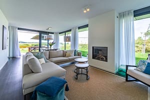 Zandbank 7 is een riante, luxe, 8-persoons villa gelegen aan een waterpartij. De sfeervolle woonkamer is heerlijk licht en door de glazen pui over de volle breedte van de...