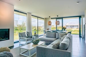 Zandbank 9 is een riante, luxe, 8-persoons villa gelegen aan een waterpartij. De sfeervolle woonkamer is heerlijk licht en door de glazen pui over de volle breedte van de...