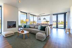 Luxe villa voor 8 personen (4 volwassenen en 4 kinderen), gelegen aan een waterpartij. De villa is huisdiervrij. De sfeervolle woonkamer is heerlijk licht en door de glazen...