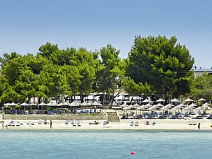 Gelegen aan het begin van het schiereiland Kassandra, het strand kijkt uit op een zachte helling (grof zand bezaaid met kiezels). Het historische kanaal van Portidea en het...