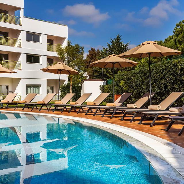 Aparthotel The Patio Suite is een modern complex met ruime en comfortabele suites. Het hotel heeft vier zwembaden en ligt op zo’n 1,2 km van het mooie strand Falesia. Op loopafstand vindt u verschillende restaurants en gezellige cafés. De moderne en comfortabele kamers hebben allemaal een aparte slaapkamer, woonkamer, keuken en een balkon.Eenmaal aangekomen bij het hotel komt u meteen tot rust. Neem plaats bij Patio Bistro voor een heerlijk drankje en een snack. Buiten vindt u vier zwembaden, twee voor volwassenen en twee voor kinderen, omringd door prachtige pijnbomen. Op de fijne ligbedden is het heerlijk vertoeven in de zon. Het hotel ligt op een rustige locatie waar u heerlijk kunt wandelen en fietsen. Er rijdt daarnaast een gratis busje naar het strand en de stad Vilamoura.