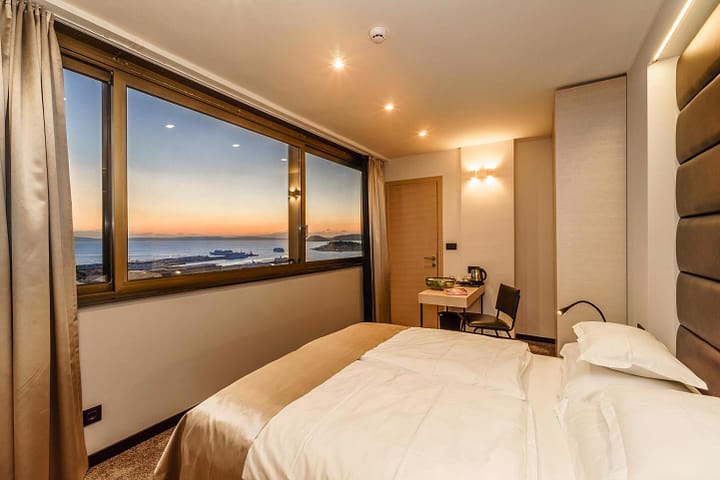 Ben je op zoek naar een modern 4-sterrenhotel met panoramisch uitzicht in het hart van Split? The View Luxury Rooms, gelegen op de 8e verdieping van een zakentoren, biedt stijlvol ingerichte kamers met adembenemende uitzichten over de stad en de zee. Op slechts 600 meter van het UNESCO-werelderfgoed Paleis van Diocletianus, en op een korte wandeling van het populaire Bačvice-strand, is dit de ideale uitvalsbasis om Split te verkennen. Geniet van comfortabele kamers met moderne voorzieningen en begin je dag met een heerlijk ontbijt. Boek nu je verblijf bij D-reizen en ervaar het beste van Split vanuit een unieke locatie!