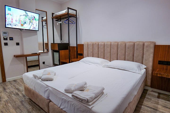 Ben je op zoek naar een betaalbaar verblijf in het zonnige Vlorë? Hotel Semajo biedt comfortabele kamers met airconditioning en WiFi. Gelegen op slechts 500 meter van het prachtige Ri-strand, kun je binnen enkele minuten genieten van de zon en de zee. Het hotel beschikt over een eigen restaurant en bar, zodat je kunt proeven van lokale specialiteiten zonder het hotel te verlaten. Met een 24-uursreceptie en parkeergelegenheid is Hotel Semajo de ideale uitvalsbasis voor je vakantie in Albanië. Boek snel je verblijf en ontdek het mooie Vlorë!