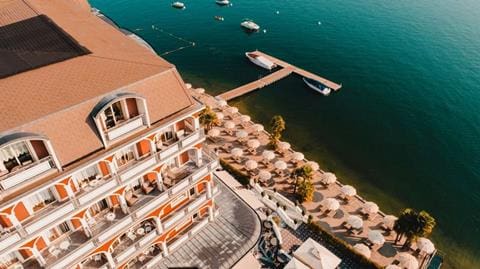 Privéstrand aan het meer, Restaurant met panoramisch uitzicht, Sfeerrijke wellness, Klassiek ingerichte kamers, Nabij Borromeïsche Eilanden, Loopafstand van het centrum & inclusief transfers.