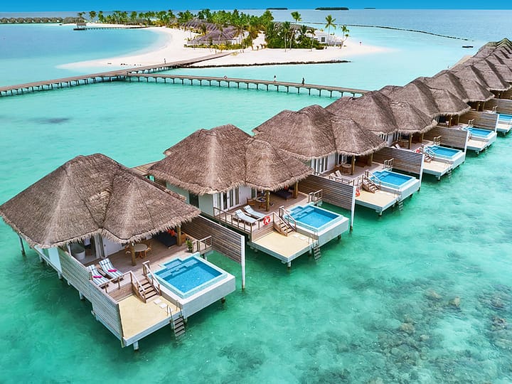 In het noordelijke deel van het Zuid-Nilandhe atol, met watervliegtuig op ca. 35 min. toegankelijk. Tropisch eiland (400 x 60 m) in het midden van een grote turquoise blauwe lagune. Het huisrif…