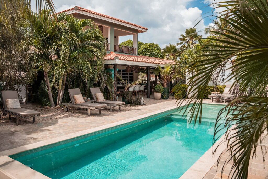 Beschrijving Puur Bonaire Laad weer helemaal op Stel je voor: je eigen oase van rust in een tropisch paradijs. Dat is precies wat je vindt bij Puur Bonaire. Hier draait alles om ontspanning en avontuur, of je nu de buitengym ‘Puur Gymboetiek’ verkent of een duik neemt in het magnesium zwembad. En vergeet de hartelijke gastvrijheid van Jos en Imca niet, die altijd paraat staan om jouw verblijf onvergetelijk te maken. In een moderne studio direct aan het zwembad vind je jouw thuis weg van huis. Geniet van de luxe van een volledig uitgeruste keuken en begin je dag op je eigen terras, omringd door het kalmerende gezang van vogels. Een ding is zeker, je keert helemaal opgeladen terug naar Nederland. Wat een service! Naast de heerlijke buitengym heeft Puur Bonaire nog meer verrassingen voor je in petto! Ontdek de mooiste stranden met jouw huurauto van By June, compleet met een kleine barbecue, comfortabele strandstoelen en zelfs een handige koelbox. Juist, dat klinkt als een perfecte toevoeging aan je vakantie! Imca en Jos, de lokale experts van Bonaire, delen maar al te graag hun insider tips met je. Vraag naar alle duik mogelijkheden in de omgeving. Op slechts enkele honderden meters vind je al een prachtige duikplek! De mogelijkheden zijn eindeloos bij Puur Bonaire. ‘Hoogtepunten’ van je vakantie Stap in je huurauto en ontdek het bijzondere eiland Bonaire. Of je nu op zoek bent naar avontuur of liever ontspant aan zee, met een huurauto heb jij de vrijheid om te gaan en staan waar je wilt. Rijd naar de oude hoofdstad Rincon en breng een bezoek aan The Cadushy Distillery, waar je kunt kennismaken met het lokale drankje en meer te weten kunt komen over het productieproces. Vervolg je reis naar het prachtige uitkijkpunt Sergu Largu, waar je hoog boven het landschap uitsteekt en kunt genieten van een adembenemend uitzicht. En voor de echte avonturiers is er het Washington Slagbaai National Park, waar je zelfs naar het hoogste punt van het eiland kunt klimmen! Laat je meevoeren door de ontdekkingen en beleef Bonaire op een unieke manier. Ligging Puur Bonaire * Op 300 meter van zandstrand Bachelor’s Beach * Op 300 meter afstand van supermarkt * Op 3 kilometer afstand van restaurants * Op 5 kilometer van centrum Kralendijk * Op 2 kilometer van de luchthaven * Pink Beach op 7.5 kilometer Kamers * Studio Superior, zwembadzijde (max. 2 personen) * Twee losse bedden * Badkamer met douche, toilet en haardroger * Keuken met o.a. magnetron, oven, blender en broodrooster * Airconditioning * Kluisje * Koelbox en beach-wijnglazen * Buitenzitjes en loungebank * 2-kamerappartement (1-4 personen) * Slaap-/woonruimte met losse bedden * Badkamer met douche, toilet en haardroger * (Extra*) slaapkamer voor met tweepersoonsbed * (Extra*) badkamer met douche, toilet en haardroger * Kitchenette met o.a. koelkast, magnetron en koffie-/theefaciliteiten * Airconditioning * Kluisje * Buitenzitjes en loungebank * Gelegen op de eerste verdieping * *Tweede slaap- en badkamer beschikbaar bij boeking voor 3 of 4 personen * 3-kamerappartement, zwembadzijde (1-4 personen) * Slaapkamer met tweepersoonsbed * Slaapkamer met losse bedden * Twee badkamers met douche, toilet en haardroger * Keuken met o.a. koelkast, oven, magnetron, koffie-/theefaciliteiten en vaatwasser * Airconditioning * Groot terras aan het zwembad Faciliteiten * Zwembad * Ligbedden en parasols * Buiten-gym * Wi-Fi * Linnen, badhanddoeken en strandlakens * Opslag en schoonmaak voor duikspullen * Boetiekshop * Privé parkeergelegenheid Extra's * Handdoekwissel: elke maandag en donderdag * Bedlinnenwissel: 1x per week * (Tussentijdse) schoonmaak: 1x per week * Incheck mogelijk vanaf 15:00 uur * Uitchecken voor 12:00 uur * Late check-out is niet mogelijk * Babybedje op aanvraag (gratis) * Kinderstoel op aanvraag (gratis) * Massages (tegen betaling) * Kinderen <12 jaar op aanvraag * Accommodatie is niet rolstoeltoegankelijk Verzorging * Je verblijft bij Puur Bonaire op basis van Logies