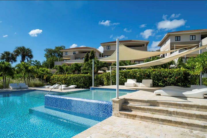 Beschrijving Beach Houses White Sands Genieten op zijn best… beach Houses White Sands ligt in het prachtige Blue Bay Resort op Curacao. Het is de ideale locatie voor een ontspannen vakantie aan het strand. Dit ruime vakantiehuis is stijlvol ingericht en beschikt over alle gemakken zoals een volledig ingerichte keuken, comfortabele slaapkamers en een heerlijk groot terras. Tijdens je vakantie wil je graag alles. Beetje sporten, wat luieren, goed eten en een comfortabel verblijf. En dat alles lekker aan het strand maar toch ook bij de stad. Is dat mogelijk? Ja zeker wel, bij Beach Houses White Sands zit je hiervoor goed. Strand, zee en palmbomen Zo is er een duikschool, watersportcentrum en 18-holes golfbaan die door het hele resort slingert. Uitgegolfd kan je nog even een ligbedje kiezen op het tropische palmenstrand voordat je aanschuift bij Brass Boer voor een hapje en een drankje. Wist je trouwens dat je als gast bij Beach Houses White Sands gratis toegang hebt tot het strand van Blauwbaai. En wat staat er morgen op de planning? Geniet van de prachtige onderwaterwereld of ga lekker luieren bij het gedeelde zwembad. Ga op avontuur! The Beach Houses White Sands ligt lekker centraal, net ten noorden van Willemstad. Alles op korte rijafstand. De huurauto staat voor je klaar dus instappen en gaan! Ontdek Willemstad en bewonder de Handelskade met felgekleurde gebouwen of de beroemde Pontjesbrug. Natuurlijk ga je even wat eten of drinken in restaurant de Gouverneur met het mooiste uitzicht op de stad. En heb je genoeg van de palmen op het Blue Bay strand, dan zijn er nog zeker 15 andere stranden of strandjes waar je van de zon en onderwater wereld kunt genieten Ligging Beach Houses White Sands * Op 700 meter van restaurants * Op 800 meter van zandstrand Blauwbaai * Op 9 kilometer van centrum Willemstad * Op 11 kilometer van winkels/supermarkt * Op 9 kilometer van de luchthaven Kamers * 3-kamerappartement Terrace (1-4 personen) * Formaat: ca. 110 m2 * Slaapkamer met tweepersoonsbed * Slaapkamer met twee 1-persoonsbedden * Badkamer met douche en toilet * Keuken met koelkast, vriezer, combimagnetron, broodrooster, vaatwasmachine en koffie-/theefaciliteiten * Airconditioning en ventilator * Televisie * Kluisje * Wi-Fi * Wasmachine * Terras met zitjes * Appartementen zijn gelegen op de begane grond Faciliteiten * Zwembad * Ligstoelen en parasols * Restaurant en bar * Speelplaats * Volleybal * Parkeergelegenheid Extra's * (Tussentijdse) schoonmaak: op aanvraag (tegen betaling) * Incheck mogelijk vanaf 15:00 uur * Uitchecken voor 11:00 uur * Late check-out mogelijk o.b.v. beschikbaarheid (tegen betaling) * Babybedje en kinderstoel op aanvraag (gratis) * Boodschappenpakket voor aankomst (tegen betaling) * Massage (tegen betaling) * Yoga (tegen betaling) * Tennisbaan (tegen betaling) * Duiken (tegen betaling) * Golfbaan (tegen betaling) * Gemiddeld elektra- en waterverbruik inbegrepen, extra mogelijk tegen betaling * Faciliteiten voor mindervaliden aanwezig Verzorging * Je verblijft bij Beach Houses White Sands op basis van Logies