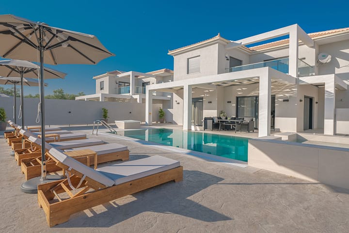 Beschrijving Ionian Escape Villas Een echte Ionian Escape! Rijd door het prachtige groen van het betoverende Zakynthos en laat de olijfbomen één voor één aan je voorbijglijden, je eigen Ionian Escape-vakantie is binnen handbereik! Laat je verblijden door een verblijf in deze luxe villa's, waar jouw vakantiedromen werkelijkheid worden. De villa's zijn genereus ingericht en stralen een lichte en uitnodigende sfeer uit. De subtiele lichte houten accenten en het verfijnde design maken deze villa's tot de ultieme vakantiebestemming. Heb je het grote privézwembad al gespot? Vergeet niet om tijdens je verblijf een verfrissende duik te nemen. Zak lekker weg in de knusse zithoek en open eindelijk dat goede boek dat al die tijd op je heeft gewacht, of sloof je uit in de goed uitgeruste keuken en tover een heerlijke maaltijd op tafel. Laat de rust van het terras over je heen komen terwijl je geniet van het zonnetje op je gezicht, vergezeld van een verkoelend drankje. Perfect voor families die samen een onvergetelijke tijd willen beleven. Ontdek Zante stad Wist je dat de Ionian Escape villa's zich op een steenworp afstand bevinden van het Zenta Waterpark? Dat belooft een spetterend avontuur! Nog een verrassend uitje, op slechts 10 minuten rijden, is de belangrijkste stad van Zakynthos: Zakynthos-stad! Verken deze betoverende hoofdstad en aanschouw de unieke mix van geschiedenis, cultuur en mediterrane pracht met je eigen ogen. Laat je betoveren door de indrukwekkende Agios Dionysios-kerk of dwaal af naar het charmante Venetiaanse Kastro. Breng ook zeker een bezoek aan het levendige Solomos-plein en geniet van de gezellige sfeer aan de havenpromenade, dé ideale plek om lokale lekkernijen te proeven. Met een verfrissende Ouzo in de ene hand en een smakelijke 'meze' in de andere, breng je een toost uit op het authentieke Griekse leven! Plan een roadtrip over dit bijzondere eiland Ontdek het betoverende Zakynthos op eigen tempo met een huurauto en geniet van de vrijheid om in je eigen ritme de trekpleisters van dit Griekse eiland te verkennen. Rijd langs de schilderachtige kustwegen, of laat je verrassen door het groene binnenland, waar je wel duizenden olijfbomen tegen komt. Begin je reis met een bezoek aan het wereldberoemde Navagio Beach, waar een mysterieus scheepswrak het zand siert. Vervolg je avontuur naar de Blue Caves in het noorden, waar de turquoise wateren schitteren in het zonlicht. Zakynthos-stad nodigt uit tot slenteren door smalle straatjes, proeven van lokale gerechten in traditionele tavernes en het bewonderen van de historische Agios Dionysios-kerk. Met een huurauto ben je vrij om te staan waar je wil, ontdek het eiland in je eigen ritme met By June! Ligging Ionian Escape Villas * Op 500 meter van winkels/supermarkt * Op 5 kilometer van Tsilivi Beach * Op 5 kilometer van restaurants * Op 7 kilometer van centrum Zakynthos-Stad * Op 6 kilometer van de luchthaven Kamers * 4-kamervilla Deluxe met privézwembad (1-6 personen) * Formaat: ca. 140 m2 * Drie slaapkamers met 2-persoonsbed of twee 1-persoonsbedden * Drie badkamers met douche, toilet en haardroger * Keuken met o.a. koelkast, kookplaat, magnetron, vaatwasmachine en koffie-/theefaciliteiten * Airconditioning * Televisie * Wi-Fi * Balkon en terras met zitjes Faciliteiten * Ligstoelen en parasols * Badhanddoekenservice (gratis) * Bagageruimte * Wasmachine * Privé parkeerplaats Extra's * Handdoekwissel: 3x per week * Bedlinnenwissel: 2x per week * (Tussentijdse) schoonmaak: dagelijks * Incheck mogelijk vanaf 15:00 uur * Uitchecken voor 10:00 uur * Babybedje en kinderstoel op aanvraag (gratis) * Huisdieren toegestaan (max. 5kg) * Accommodatie is niet rolstoeltoegankelijk Verzorging * Je verblijft bij Ionian Escape Villas op basis van Logies