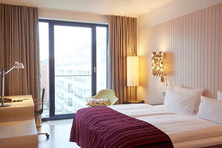 Op zoek naar een stijlvol verblijf in het hart van Berlijn? Bij het 4-sterrenhotel Scandic Berlin Potsdamer Platz geniet je van modern comfort en een ideale locatie. Het hotel ligt direct aan het levendige Potsdamer Platz, een populaire hotspot met winkels, restaurants en bezienswaardigheden. De kamers zijn ruim, licht en ingericht met Franse ramen en houten vloeren, waardoor je hier helemaal tot rust komt. Begin je dag goed met een uitgebreid biologisch ontbijtbuffet en geniet van het prachtige uitzicht over de stad vanuit de fitnessruimte op de bovenste verdieping. Grote trekpleisters zoals de Reichstag en het Brandenburger Tor liggen op loopafstand. Dit hotel biedt alles voor een geslaagde stedentrip naar Berlijn. Boek snel je verblijf bij D-reizen en ontdek het zelf!