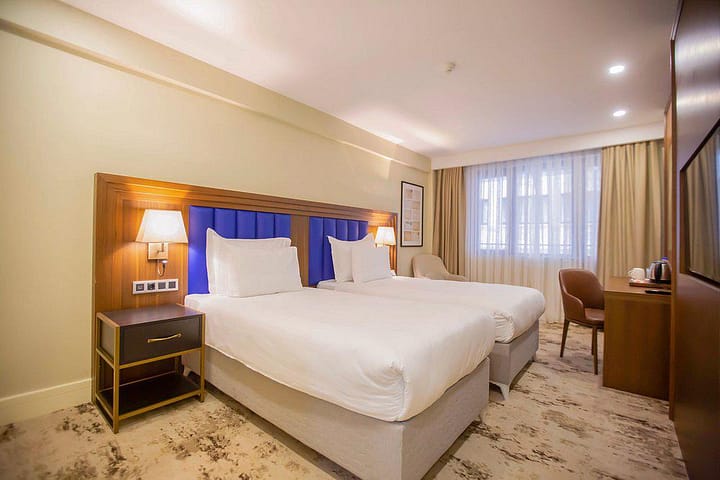 Verblijven in een aangename accommodatie in Istanbul? Hotel Ramada Plaza by Wyndham Istanbul Sultanahmet is een luxe 4-sterren hotel, perfect voor een fijne vakantie. Ruim 3512 reizigers beoordelen Hotel Ramada Plaza by Wyndham Istanbul Sultanahmet gemiddeld met een 8. Meer weten? Bekijk dan nu de foto[APOSTROPHE]s en beoordelingen van Hotel Ramada Plaza by Wyndham Istanbul Sultanahmet, voor meer informatie! Ben jij toe aan een heerlijke vakantie in Turkije? Boek jouw vakantie naar Hotel Ramada Plaza by Wyndham Istanbul Sultanahmet vandaag nog!