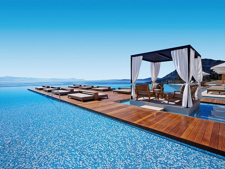 Hoog tegen de helling gebouwd, met een fantastisch panoramisch uitzicht over de kust van Benitses, omgeven door de groene natuur van Corfu. Afgescheiden van het privéstrand van het hotel door een…