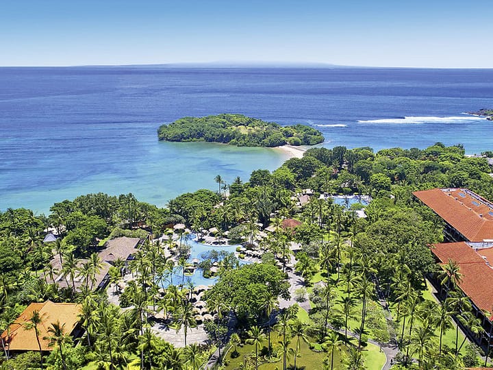 Dit populaire luxe hotel ligt direct aan het zandstrand en de boulevard. Ideaal om langs de kust door Nusa Dua te joggen.