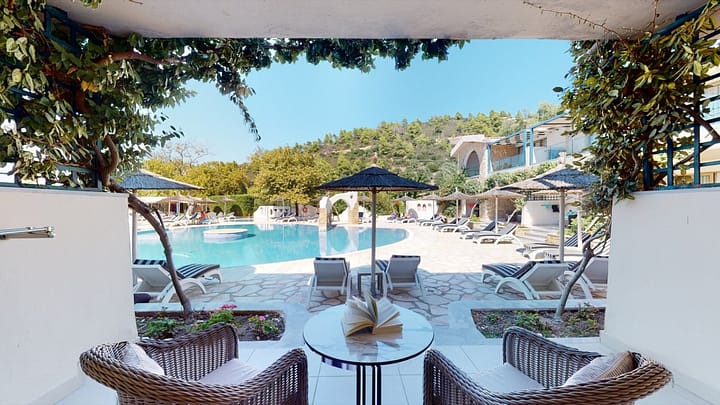 Overdag kun je heerlijk ontspannen aan het zwembad of op het privéstrand, waar de dennenbomen voor verkoelende schaduw zorgen en het water zo helder is dat je de vissen ziet zwemmen. Liever iets actiefs? Maak een boottocht langs de mysterieuze kloosters van de Athos-berg of vaar naar de Drenia-eilanden, waar verborgen baaitjes en spierwit zand je het ultieme vakantiegevoel geven. Ook op het vasteland is genoeg te beleven. Slenter door de sfeervolle straatjes van oud-Nikiti, waar de tijd lijkt stil te staan en je bij een traditionele taverne kunt genieten van lokale specialiteiten en een glas Griekse wijn. Voor de liefhebbers is een wijnproeverij in Porto Carras een echte aanrader, deze regio staat bekend om haar heerlijke wijnen. Na een dag vol indrukken keer je terug naar het hotel, waar een heerlijk diner voor je klaarstaat. Omdat je op basis van halfpension verblijft, kun je zonder zorgen aanschuiven en genieten van de smaken van de Griekse keuken. Met een cocktail in de hand en de zonsondergang voor je, besef je: dit is pas echt ontspannen. Of je nu kiest voor 6, 8, 11 of 15 dagen, een vakantie in Nikiti voelt altijd te kort.