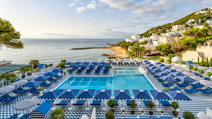 Geniet van een luxe vakantie op Ibiza! Incl. vlucht, transfer en ontbijt Gelegen aan de prachtige oostkust van Ibiza in Santa Eulària des Riu, biedt Hotel Mongibello Ibiza een luxueuze ontsnapping met een adembenemend uitzicht op zee en directe toegang tot het strand.