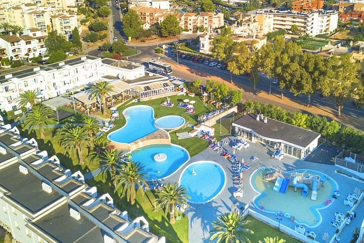 Jutlandia Family Resort bevindt zich in Santa Ponsa aan de zuidwestkust van Mallorca, op slechts circa 350-650 meter van het zandstrand. Het resort ligt in een rustige woonomgeving, terwijl het centrum van Santa Ponsa met winkels, restaurants en bars eenvoudig te voet bereikbaar is. De luchthaven van Palma is met de auto binnen ongeveer 30-40 minuten bereikbaar, waardoor de locatie zowel geschikt is voor gezinnen als voor een ontspannen verblijf dichtbij strand en voorzieningen.