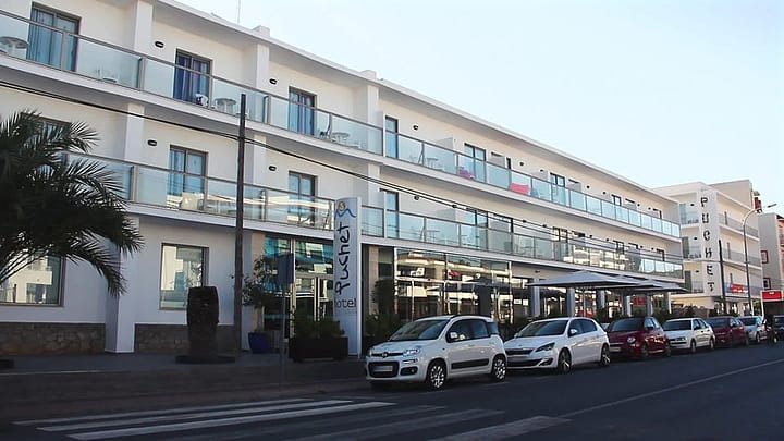 Hotel Puchet ligt in San Antonio, op slechts enkele minuten lopen van het zandstrand en de levendige boulevard. Dankzij de centrale ligging ben je dichtbij winkels, cafés en uitgaansgelegenheden, maar kun je ook makkelijk terugtrekken voor rust. De luchthaven van Ibiza is in ongeveer 20-30 minuten met de auto te bereiken, waardoor het hotel goed bereikbaar is. Het hotel ligt op een hoeklocatie, wat zorgt voor een combinatie van straatzicht en toegang tot de directe omgeving. De locatie maakt het zowel geschikt voor zon- & strandvakantie als voor wie de eilandervaring wil opnemen.