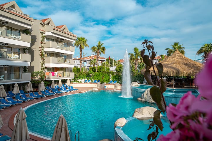 Aroen 50 m from a beach lies the hotel Marmaris Begonville Hotel. The city centre is aroen 1 km away. There is a shuttle between the hotel and the airport (for a fee). The hotel has a TV lounge met satellite TV.