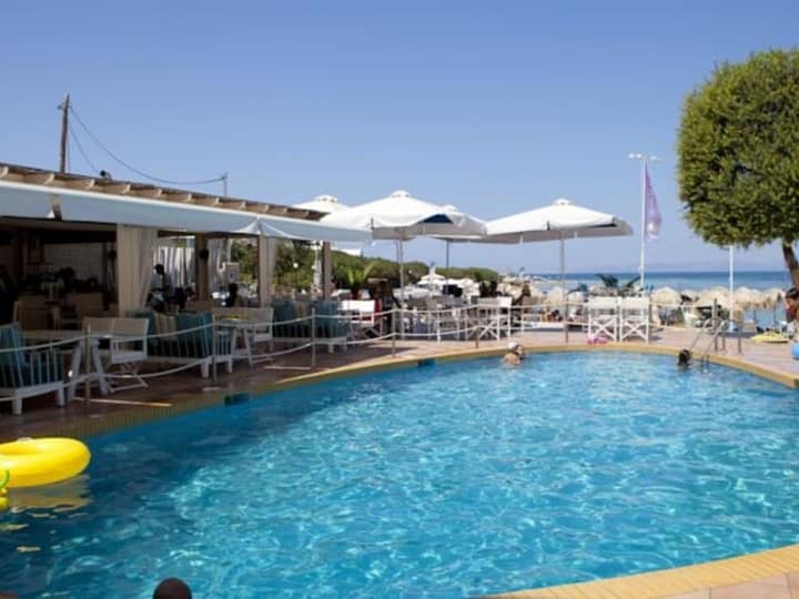 The hotel consists of 15 studios, 2 and 3 bedded fully equipped met kitchen, air-conditioning, TV and balkon. Also the hotel provides you met sunbeds to enjoy the beach and a snack beach bar…