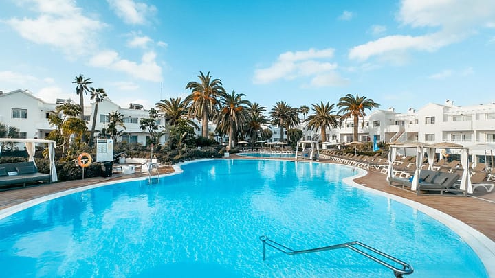 Het complex bestaat uit lage gebouwen met appartementen rondom zwembaden en tuinzones. Er is een receptie, gratis WiFi, parkeergelegenheid en een minimarkt. Gasten kunnen gebruikmaken van meerdere zwembaden, zonneterrassen met ligbedden en parasols, en een restaurant met buffetconcept. Voor ontspanning zijn er wellnessfaciliteiten beschikbaar, zoals massages en een sauna, en er is een poolbar voor drankjes en lichte maaltijden.