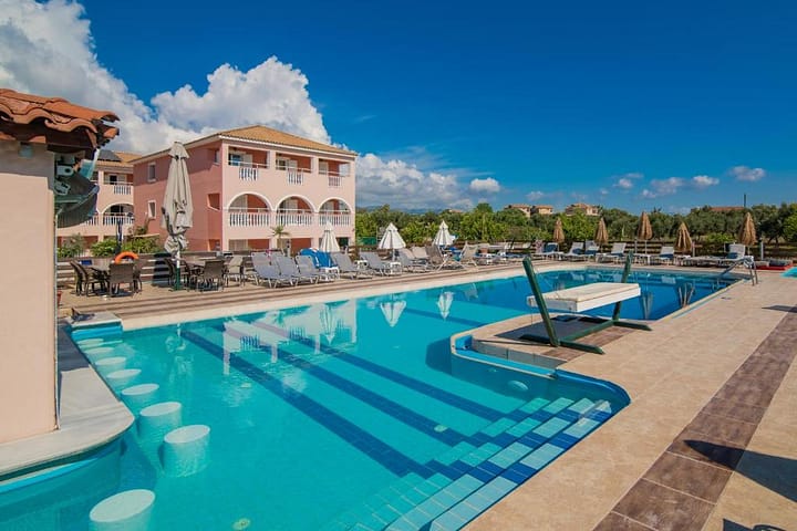 Het hotel beschikt over meerdere zwembaden, waaronder een groot hoofdzwembad en een zwembad met glijbanen voor extra waterpret. Rondom de zwembaden vind je ligbedden en parasols om heerlijk te ontspannen. Verder biedt het hotel een 24-uursreceptie, minimarkt, poolbar en gratis wifi in de openbare ruimtes. Voor extra gemak is er een wasservice en kun je scooters of fietsen huren om het eiland te verkennen.