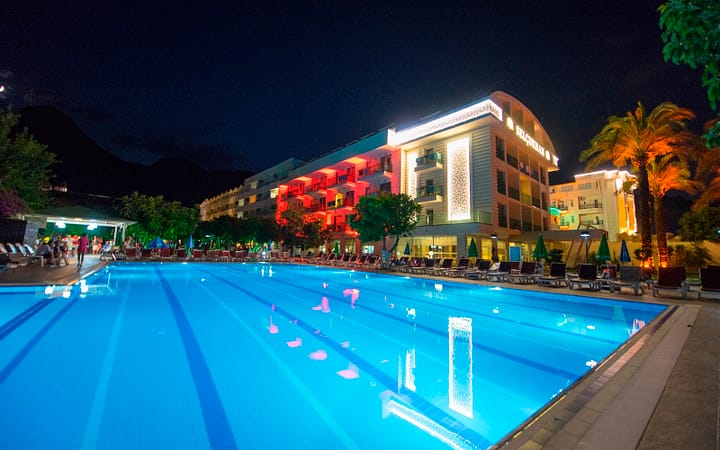 Dit 4-sterren hotel ligt op slechts honderd meter van het privéstrand in Beldibi, met uitzicht op de azuurblauwe Middellandse Zee en het imposante Taurusgebergte. De centrale ligging is ideaal voor wie wil genieten van stranden én uitstapjes naar Kemer of Antalya (bijna 35 km van de luchthaven).