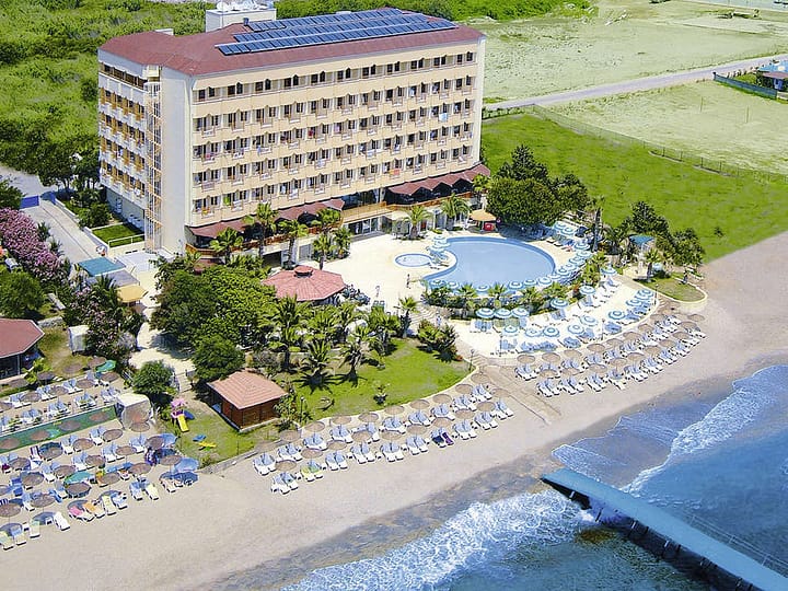 Het hotel ligt direct aan een privéstrand. Het centrum van Alanya ligt op ongeveer tien kilometer afstand.