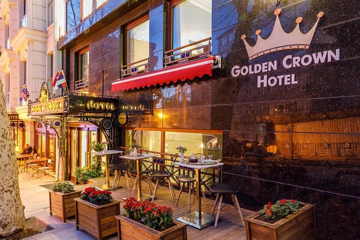 Golden Crown Hotel ligt in de sfeervolle wijk Sultanahmet in het hart van Istanbul. Rondom het hotel vind je talloze restaurants, cafés en winkeltjes.