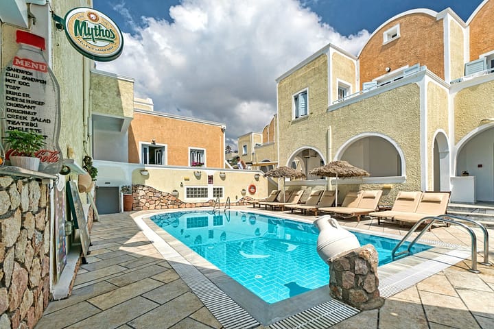 Dit appartementenhotel bevindt zich midden in het hart van Kamari.