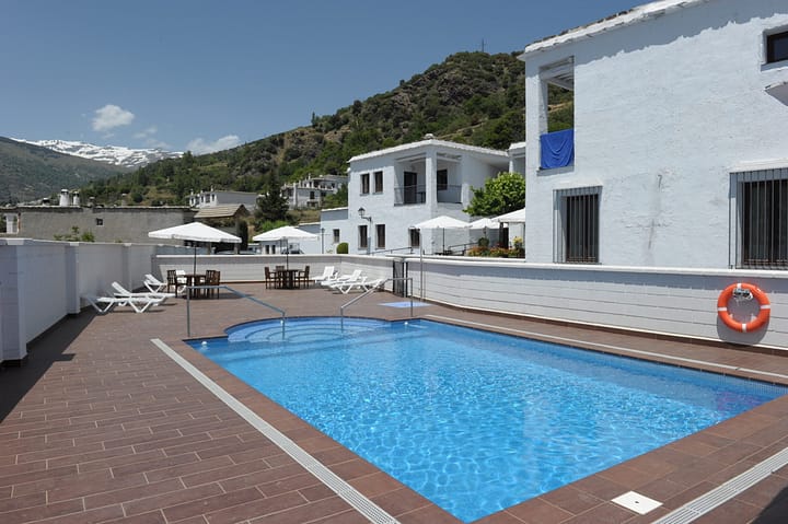 Villa Turística de Bubión ligt in het charmante en traditionele bergdorp Bubión, in de Alpujarra Granadina aan de zuidkant van het Sierra Nevada-gebergte, te midden van spectaculaire natuur en rust. Dit maakt het hotel een uitstekende uitvalsbasis voor wandelingen, natuurtochten en het ontdekken van de omliggende dorpjes zoals Pampaneira en Capileira te voet. De ligging boven in de Poqueira-kloof biedt mooie uitzichten op de vallei en de bergen, wat zorgt voor een vakantie dicht bij buitenlucht en panoramische vergezichten. Het dorp zelf heeft een ontspannen Andalusische sfeer met smalle straatjes en authentieke architectuur, waardoor je je meteen in een andere wereld waant. Ondanks de rustige setting zijn er lokale faciliteiten en eetgelegenheden op loopafstand van het hotel.