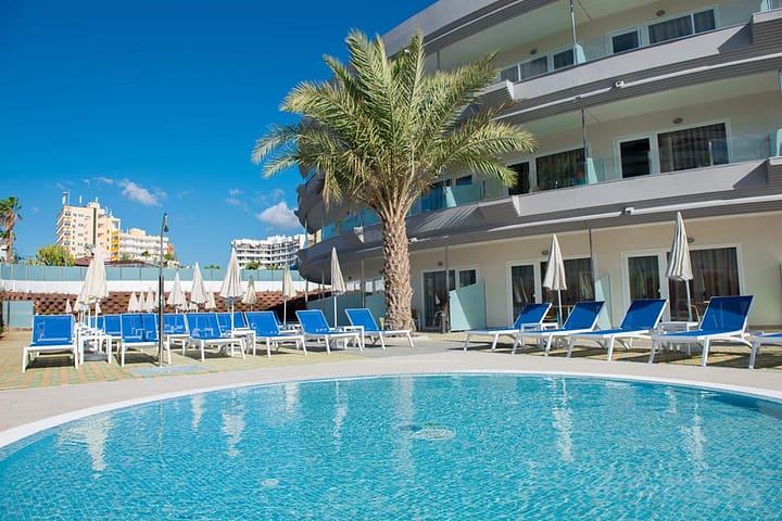 In het bruisende centrum, Een paar stappen tot het strand, Zonnestralen op het balkon, All Inclusive, all good, Geen kids, ongestoord genieten, Slaap in een ruime nieuwe kamer & inclusief transfers.