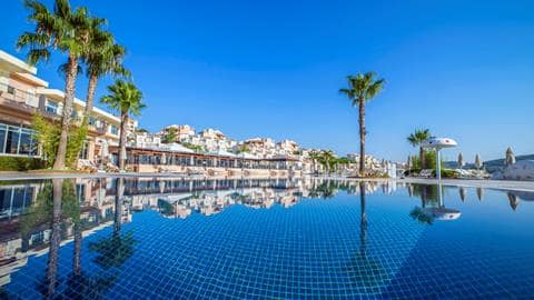 8-daagse Zonvakantie naar Noord Egeïsche Kust bij Wyndham Residences Kusadasi Golf & Spa Genieten van alle ruimte, een spectaculair uitzicht en meer zwembaden dan je op twee handen kunt tellen? Dan ben je hier aan het juiste adres. Het uitgestrekte hotel ligt naast een 18 holes golfbaan waar je heerlijk een balletje kunt slaan. Trek je bikini aan en smeer je in, op naar het zwembad! Met 11 zwembaden en 10 glijbanen vind je hier volop zwem en spetterplezier. Aan het einde van de dag keer je terug naar je luxueuze suite die van alle gemakken is voorzien. Even lekker douchen of neerploffen op de bank, je hebt hier ruimte genoeg. 18-holes golfbaan voor de deur, Wel 10 waterglijbanen, Ruime, luxueuze suites, Ontspannen in de uitgebreide spa, Aan restaurants geen gebrek, Activiteiten voor jong en oud & inclusief transfers.