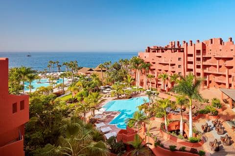 Dit hotel op Tenerife ademt luxe! Dit 5 sterrenhotel, gebouwd in Moorse sfeer, is niet alleen van buiten een plaatje, maar ook van binnen. Bij binnenkomst ligt de rode loper klaar. Word luxueus ontvangen en als een filmster behandeld. De ober komt je bedienen aan je bedje aan het zwembad, terwijl je geniet van het blauwe uitzicht over de oceaan met een cocktail in je hand. Het briesje laat de palmen wapperen en dit geluid zorgt voor een gemoedelijke sfeer. Met de zonnebrand olie in de aanval en een grote zonnebril ben je klaar voor de paparazzi. Genieten met hoofdletter G.
