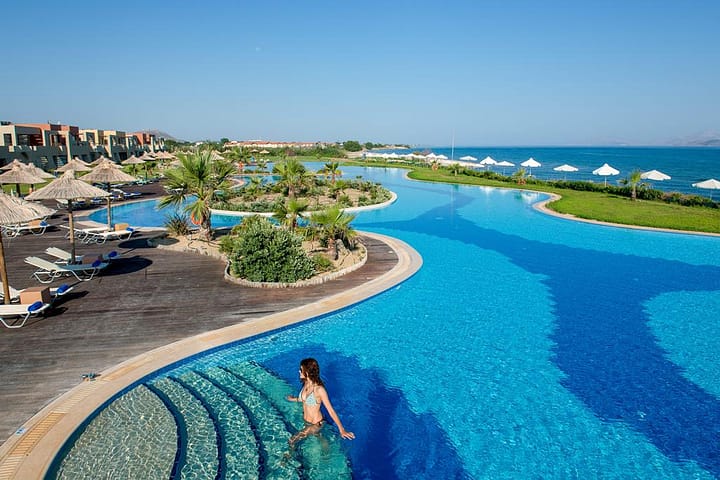 Zeg je luxe en perfecte service, dan zeg je Astir Odysseus. Dit fijne 5 sterrenhotel is een pareltje in het rustige Tigaki. Wat een prachtig breed zwembad met uitzicht op zee! In de restaurants smul je van heerlijke gerechten, je proeft dat hier aandacht aan is besteed. Je kamers zijn ruim en comfortabel, bijna beter dan thuis. En het enthousiaste personeel staat dag in dag uit klaar om je een onvergetelijke vakantie te bezorgen.