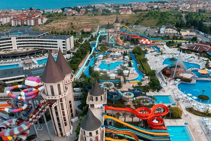 Aqua Paradise Resort is, zoals de naam al doet vermoeden, een waar waterparadijs voor het hele gezin. Het schitterende 4-sterren resort ligt naast het grootste aquapark van Bulgarije met tal van spectaculaire glijbanen voor groot en klein, een lazy river en nog veel meer. Aqua Paradise Resort beschikt over tal van faciliteiten, zoals meerdere zwembaden, diverse restaurants, een Spa Center, moderne kamers en een miniclub voor de kinderen. Boek snel en beleef een spetterende vakantie met het hele gezin.