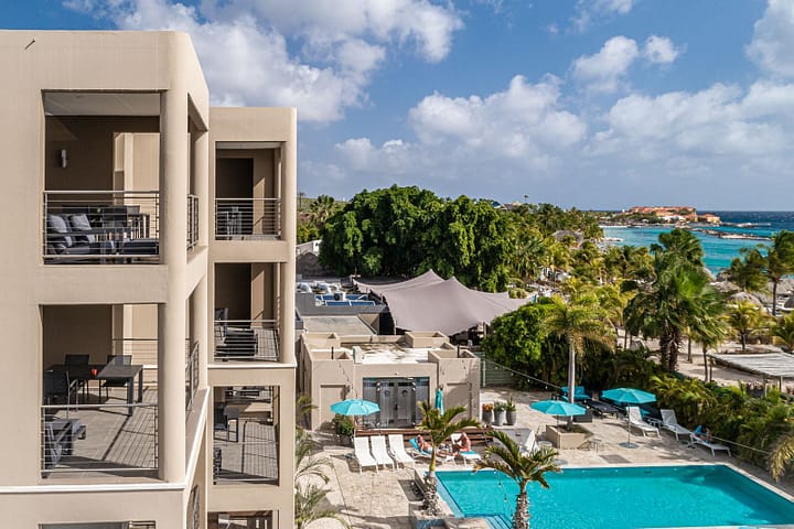 Caribische summer feelings krijg je wel in dit luxe, comfortabele appartementencomplex! Of je nu’s winters of zomers afreist naar dushi Curaçao, een zonnige vakantie zul je hebben. Ga je voor een uitstekende locatie, luxe suites en ruime appartementen en een verfrissend zwembad? Dan heb je je onderkomen voor je volgende vakantie gevonden; The Beach House. Dit complex ligt direct aan Mambo Beach met zijn vele faciliteiten en hippe beachclubs, dus zo de deur uit en je staat letterlijk met je voeten in het witte zand. Afkoelen kan dus in zee, maar ook in het zwembad dat wordt omringd door turquoise gekleurde parasols. Ook Willemstad of de fraaie, sfeervolle wijk Pietermaai ligt binnen handbereik op slechts 5-10 minuten rijden. Ligbedje, palmboompje en een boekje, kan je vakantie nóg tropischer?