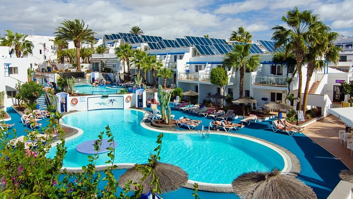 Geniet van een 6, 8, 11 of 15-daagse zonvakantie en verblijf in het hart van Puerto del Carmen op Lanzarote incl. vlucht en transfer Het Parque Tropical Hotel is gelegen in het centrum van Puerto del Carmen, op ca. 10 minuten van de luchthaven. Voor de ultieme zonvakantie ben je hier aan het juiste adres, het hotel ligt namelijk op ca. 150 meter van het strand. Het hotel beschikt over meerdere zwembaden, en om milieuvriendelijk te zijn wordt het warme water van het gehele complex voornamelijk geleverd door zonne-energie. De appartementen beschikken over een uitgeruste keuken met 2-pits elektrische kookplaat, koelkast/vriezer, magnetron, waterkoker, broodrooster, koffiefilterapparaat en een elektrische fruitpers. Op het balkon vind je een parasol, tafel en stoelen. Het personeel bij de receptie staat klaar om al je vragen te beantwoorden. Er zijn ook mogelijkheden voor het huren van een auto, het bestellen van een taxi of het boeken van diverse excursies. Ben jij nou op zoek naar een ontspannen zonvakantie? Dan is Puerto del Carmen echt wat voor jou! Dit is de grootste en meest bekende badplaats op Lanzarote en is met name geliefd om de mooie stranden. Het populairste strand van Puerto del Carmen is Playa Grande, waar jij heerlijk aan je kleurtje kunt werken. Maar ook Playa de los Pocillos en Playa de Matagorda zijn twee mooie stranden die een bezoekje waard zijn. De gezellige en drukke boulevard is een 6 km lange verzamelplaats van gezellige restaurants, knusse bars en leuke souvenirwinkeltjes. Deze boulevard wordt ook wel het toeristische hart van Lanzarote genoemd. Het sfeervolle oude centrum van de stad ligt rondom de haven. Hier vind je een aantal goede visrestaurants, en kun je heerlijk plaats nemen om te gaan genieten van een verkoelend drankje. Puerto del Carmen ligt centraal in het zuiden van Lanzarote, op slechts enkele kilometers van de hoofdstad Arrecife. Met dank aan deze centrale ligging kun je vrijwel elke plaats vanaf het hotel binnen een uur bereiken. Hierdoor kun je naast de hoofdstad Arrecife ook verschillende karakteristieke dorpen bezoeken, waaronder San Bartolomé. Er is dus genoeg te beleven!