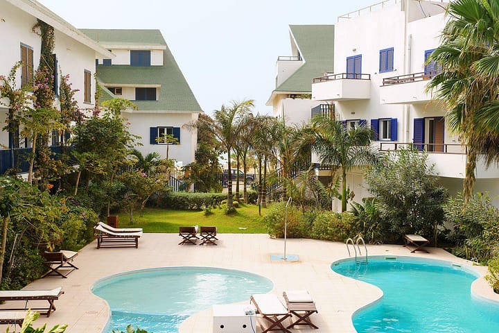 Leme Bedje Residence is een 3-sterrenhotel gelegen in Santa Maria, op het prachtige eiland Kaapverdië. Het hotel ligt direct aan zee en is uitgerust met moderne kamers die voorzien zijn van een eigen keuken. Als je geen zin hebt om te koken dan ben je binnen 2 minuten in het centrum en ga je lekker een avondje uiteten. Daarna geniet je nog van een drankje in een van de bars die Santa Maria te bieden heeft. Leme Bedje Residence beschikt over een heerlijk zwembad waar je de hele dag kunt verblijven op een gratis ligbedje. Voor de watersport liefhebbers is er genoeg te doen, zo kun je surfen, snorkelen of kanoën. Dat klinkt als een relaxte vakantie!