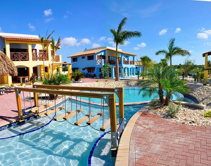 Kunuku Aqua Resort is een kleurrijk 4-sterren hotelcomplex gelegen in Tera Cora op het exotische Curaçao. Met vele zwembaden en coole waterglijbanen is er altijd waterpret aanwezig. De kinderen hebben daarnaast ook nog eens eigen kinderbad met een grote waterspeeltuin. Rondom de zwembaden vind je een zwembadbar en enkele zonneterrassen waar je urenlang kunt vertoeven op een ligbedje. Geniet van een compleet en verzorgende vakantie dankzij de all inclusive formule. Boek een verblijf in Kunuku Aqua Resort en beleef een heerlijke tijd met het hele gezin!