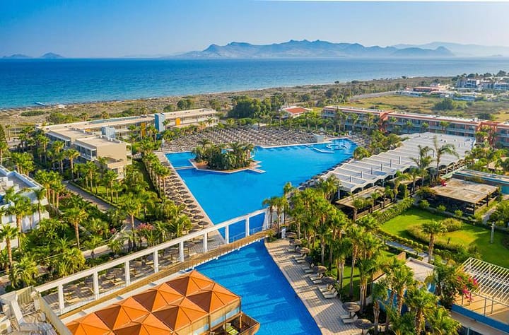 Blue Lagoon Resort is een indrukwekkend 5-sterrenhotel in Lambi op het Griekse eiland Kos. Je zult je geen moment vervelen dankzij de zeven zwembaden, vijf restaurants en vele sportfaciliteiten. Zo kun je elke dag iets anders eten en drinken en een andere activiteit doen. Je kunt de hele dag luieren op een ligbedje rondom het zwembad of op het strand, terwijl je geniet van de zon. Voor de kinderen is het een groot feest dankzij de talloze faciliteiten en een uitgebreid entertainmentprogramma. Het kinderzwembad heeft ook nog eens diverse glijbanen en speeltoestellen. En de volwassenen kunnen helemaal tot rust komen in de spacenter. Klinkt als een paradijsje, toch? Boek snel jouw All Inclusive vakantie naar Kos!
