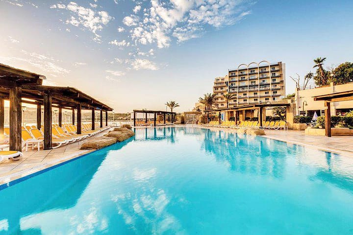 Het gezellige 4-sterren appartementencomplex Sunny Coast Resort en Spa staat bekend om zijn smaakvolle inrichting en is zowel geschikt voor gezinnen als voor stellen. Het biedt een groot zwembad aan en ligt direct aan zee aan het prachtige rotsstrand van Qawra. Ook het centrum ligt op slechts 500 meter afstand. Ideaal gelegen dus!