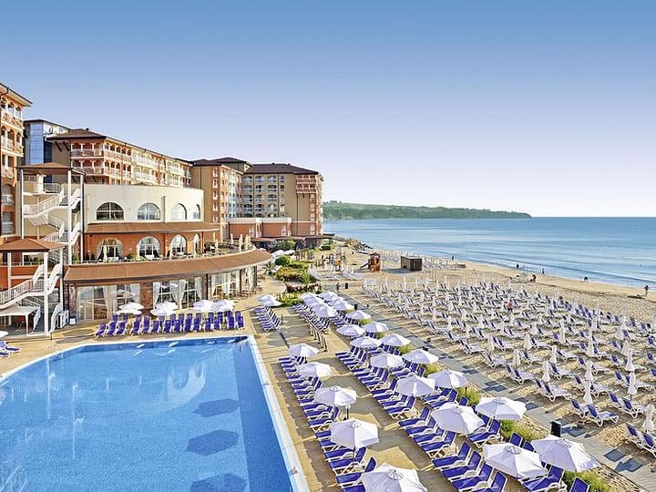 Sol Luna Bay en Mare Resort is een heerlijk 4-sterren resort direct gelegen aan het zandstrand van Obzor. In het gehele hotel is een gratis internetverbinding beschikbaar. Voor kinderen is er een waterpark aanwezig en de volwassenen kunnen ontspannen in de spa of heerlijk uitrusten aan het strand. Geniet van een heerlijke all inclusive vakantie bij de Zwarte Zeekust !