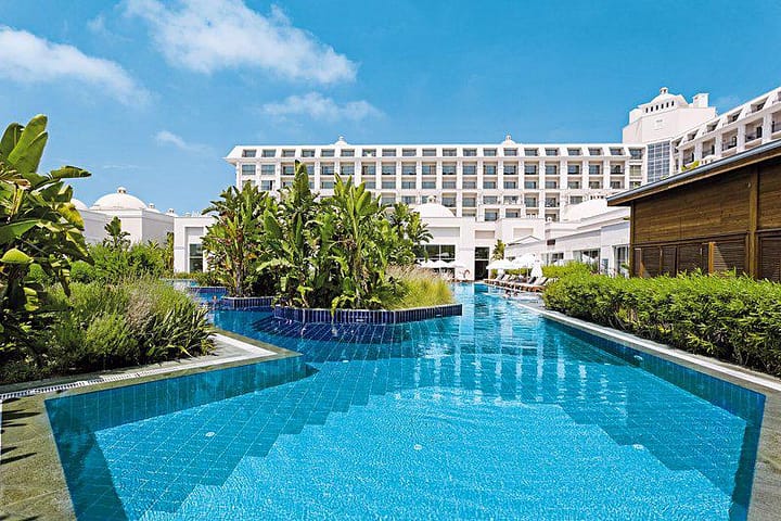 Voor een ultra luxe vakantie in Belek moet je echt naar het 5-sterren resort Titanic Deluxe Golf Belek. Nee, het is niet de bekende Titanic-boot. Het is een gigantisch resort met alles erop en eraan! Het resort heeft wel 10 restaurants en 12 bars(!). Ontspan in een van de vele zwembaden, zon langs het strand en voor een echte adrenaline kick kun je terecht in het veelzijdige aquapark! Met de groene natuur, de turkooisblauwe zee en het spectaculaire uitzicht net naast de rivier de Beşgöz (beroemd om zijn blauwe krabben) is dit het meest bijzondere adres voor een unieke en onvergetelijke vakantie. Wanneer zien we jou zonnebaden met een zomerse cocktail in Titanic Deluxe Golf Belek?