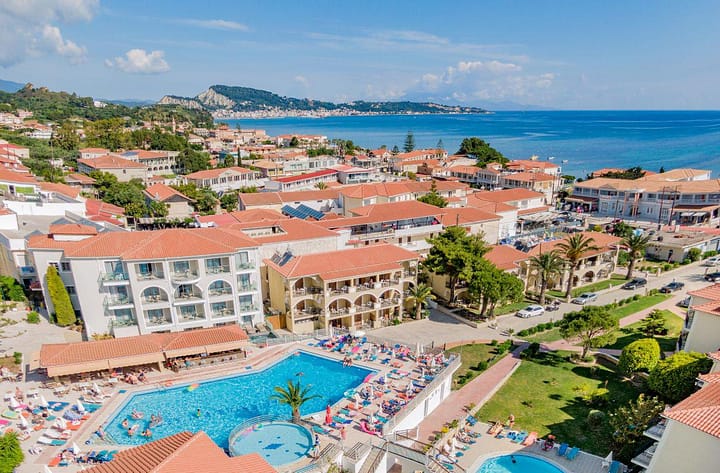 Het in 2019 gerenoveerde prachtige 4-sterrenhotel Katerina Palace in Argassi is een modern en comfortabel hotel op een paradijselijke plek. Het hotel is gelegen op een heuveltop van het Argassi Resort in Zakynthos. Katerina Palace heeft 2 heerlijke zwembaden met een poolbar waar je lekker kunt genieten van een drankje terwijl je geniet van de omgeving op je ligbedje. De kinderen kunnen zich vermaken in het kinderzwembad of de speeltuin. Voor een dagje uit om het mooie Zakynthos te ontdekken kun je lokale tours boeken via het hotel. Wat een heerlijke vakantie!